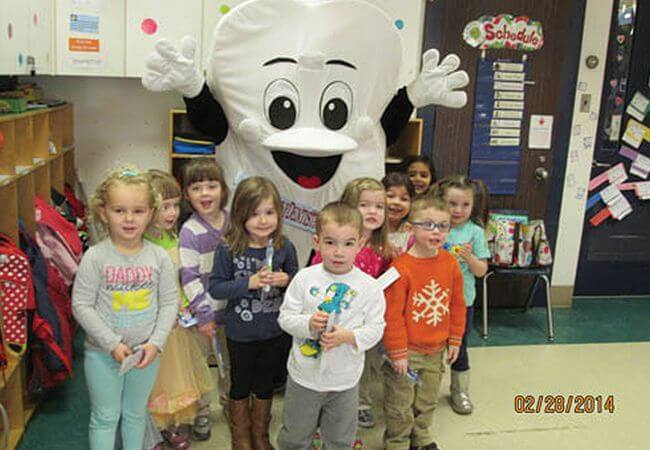 Toothy visited Forwood Elementary School to celebrate National Childrens’ Dental Health Month and to hand out toothbrushes. The children really enjoyed Toothy and asked lots of questions about dental care and dental health.